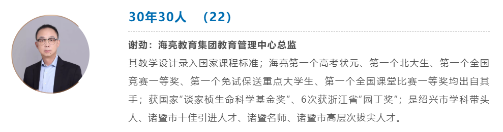 在海亮,謝勁從一名普通教師做起,歷任高中部政教主任、校區辦公室副主任、主任、學部副校長、學部校長、校區副校長、校區執行校長、副總校長、教學總監等,他從一名單純的教書匠轉變為行政管理人員,是海亮教育從小到大、從弱到強、轉型升級、登上國際舞臺的輝煌歷程的見證者和親歷者。